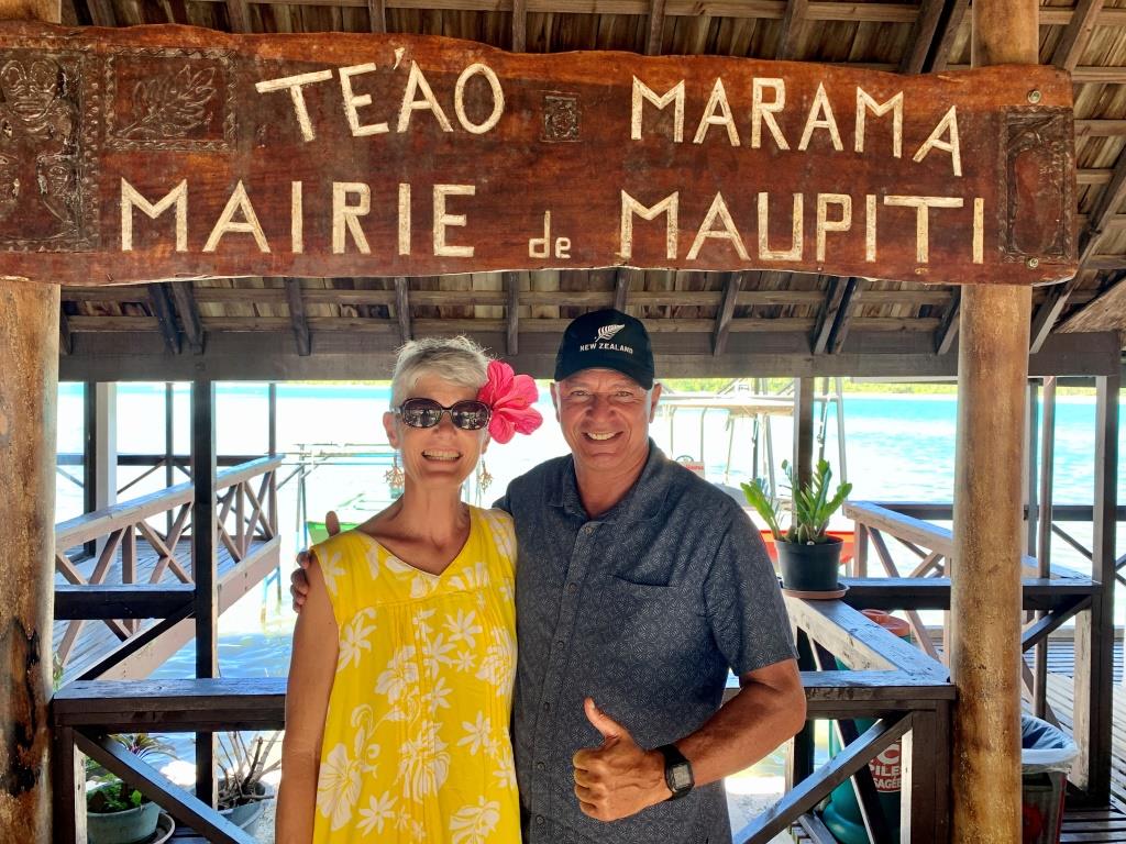 La queue quotidienne pour le bureau de poste, seule possibilité pour obtenir de l’argent liquide car il n’y a pas de DAB !!!………. et Mouss’Isa avec le Maire (Tavana en polynésien) de Maupiti.
